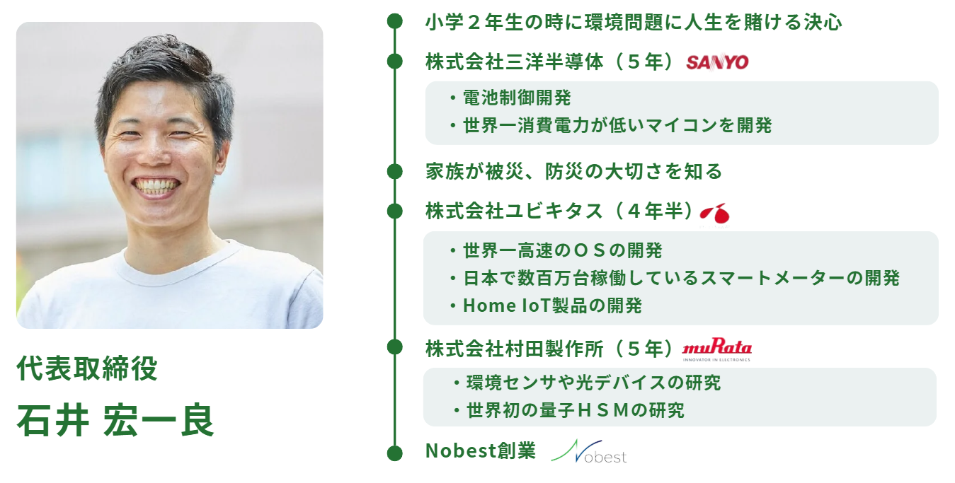 株式会社Nobestは、2022年4月22日(地球の日)に設立した環境系ITスタートアップ企業です。「技術を使って人も自然も救う」というミッションを掲げ、AI、量子計算、IoT技術を活用したゼロエミの完全体である「電気を買わない家」の実現を目指しております。