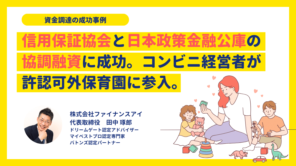 FCのコンビニ経営者が認可外保育園に新規参入するための資金を信用保証協会と日本政策金融公庫の協調融資で資金調達