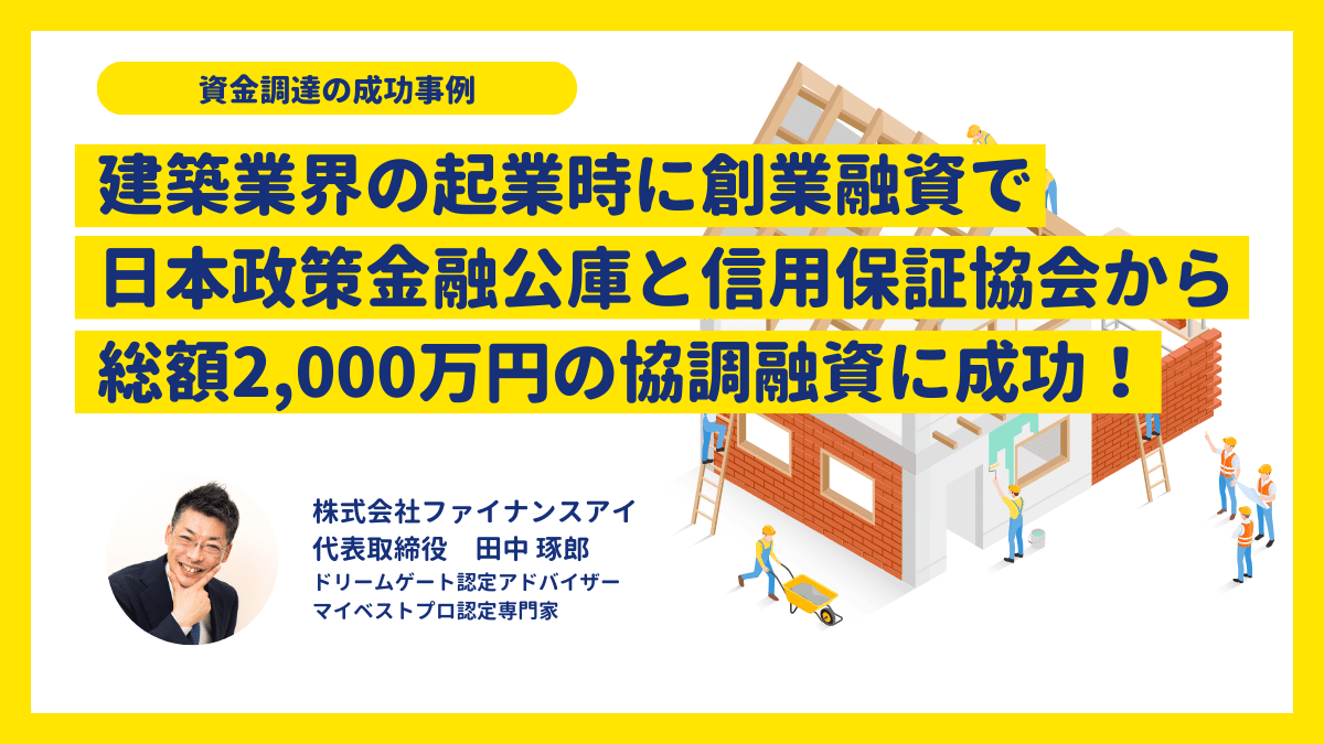 創業融資で公庫と信用保証協会から2000万円の協調融資~建築業界