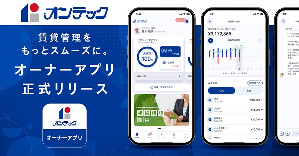 「東海・中部エリアの快適な住まいを提供する」オンテックがオリジナルアプリ「オンテック オーナーアプリ」を導入 2024年9月1日提供開始