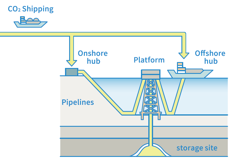 CCS概念図(海底圧入の場合)