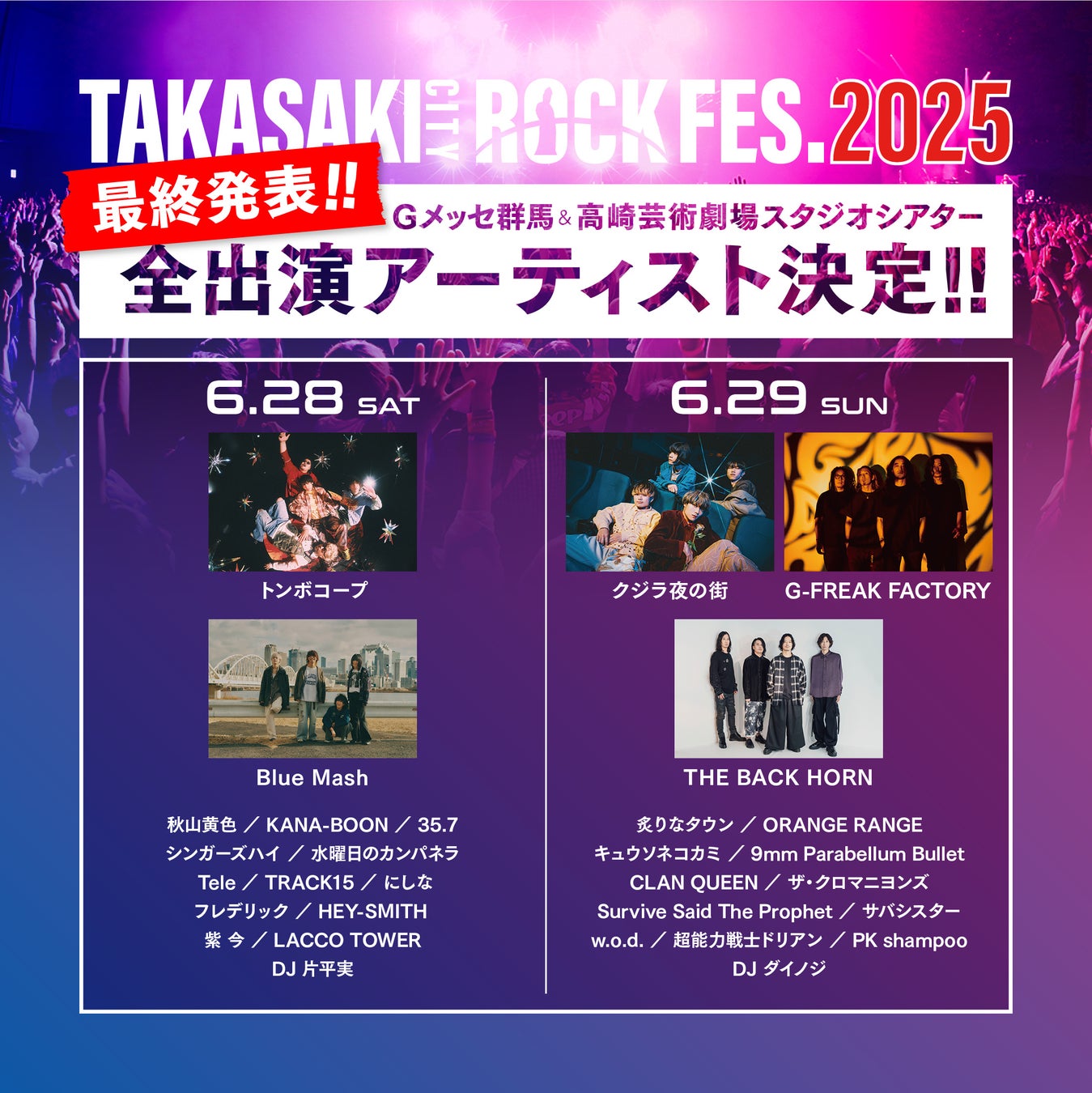 【TAKASAKI CITY ROCK FES.2025】 最終出演アーティスト発表!!