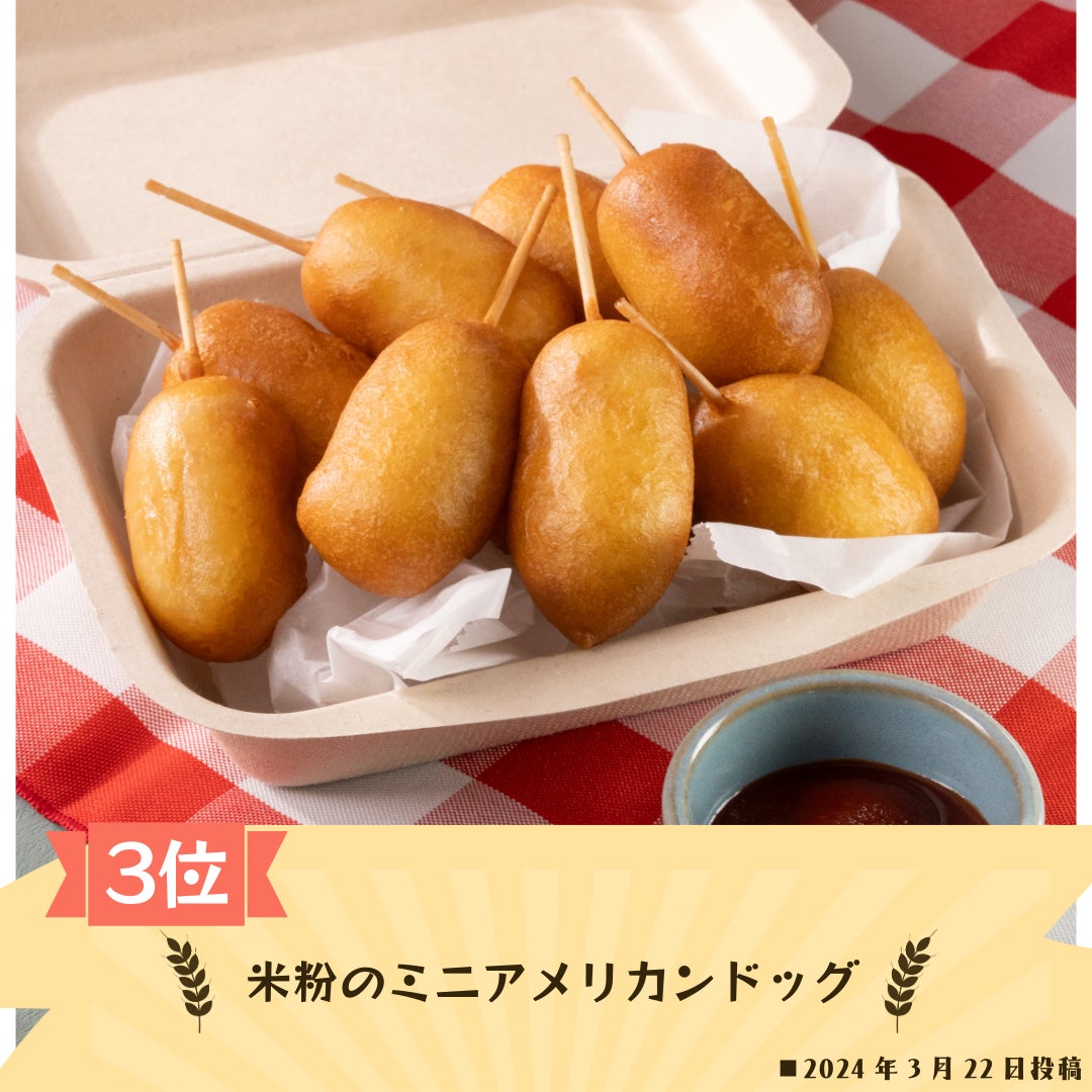 お弁当やおやつにぴったりなサイズでパクパク食べられる「米粉のミニアメリカンドッグ」が3位に輝きました。