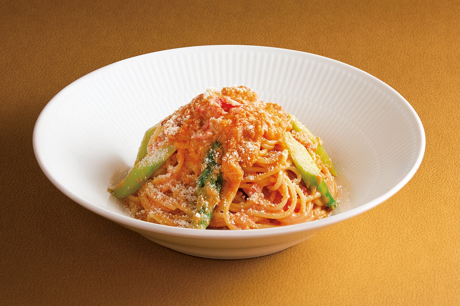 ◆紅ずわい蟹とグリーンアスパラのトマトクリーム 1,480円(税込)~