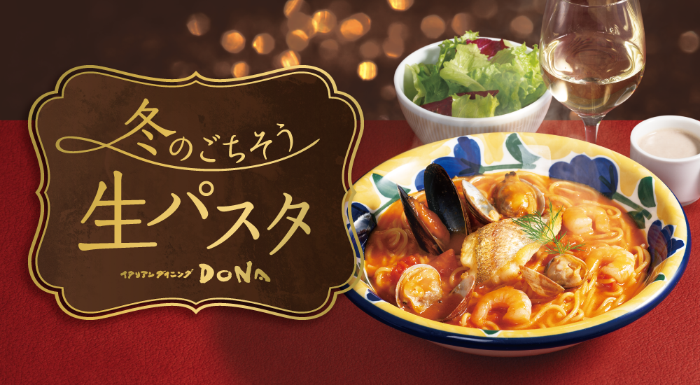 自社製の生パスタが自慢のイタリアンダイニングDONAにて、海の幸を贅沢に使ったメニューや冬だからこそ食べたくなるあったかスープパスタをご用意しました。