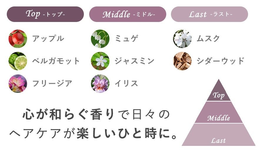 心が和らぐ香りで日々のヘアケアが楽しいひと時に。