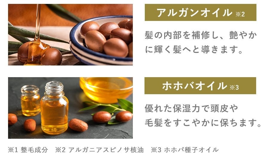 ボタニカルエキスを含んだオイル層と、髪に潤いを与えるウォーター層で、うるおいを閉じ込め、指通りのなめらかな髪へと導きます。