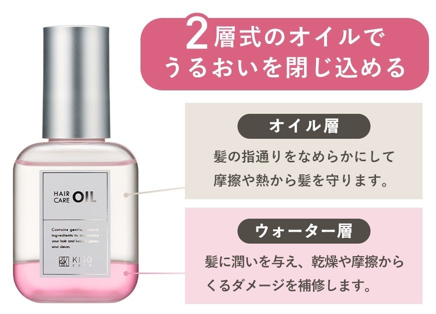芯からうるおうツヤ髪へ。8種のナチュラルオイルが配合された2層式ヘアオイルがKISO CAREから新発売。