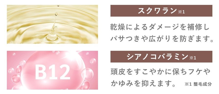 スクワランを中心とした補修成分で、髪にたっぷりの栄養を与えます。