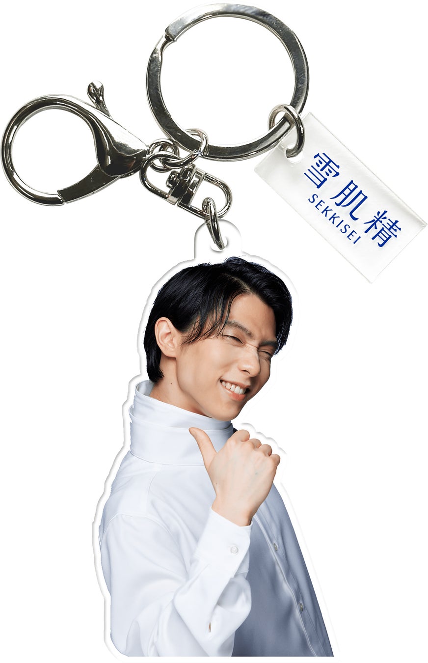 2023年8月のキャンペーンでもお客さまから反響をいただき、今回も昨年同様、羽生選手オリジナルアクリルキーホルダーをご用意。キーホルダーには、キャンペーンの対象商品である、「雪肌精 みやび モイスチュア プロテクト セラム」の5月1日より公開しているキービジュアルのアザーカットを採用しています。