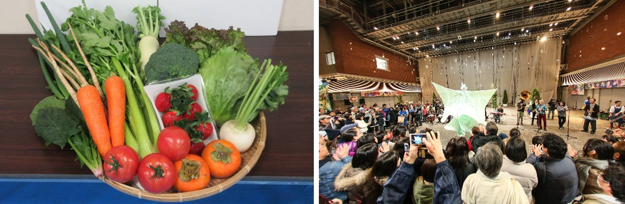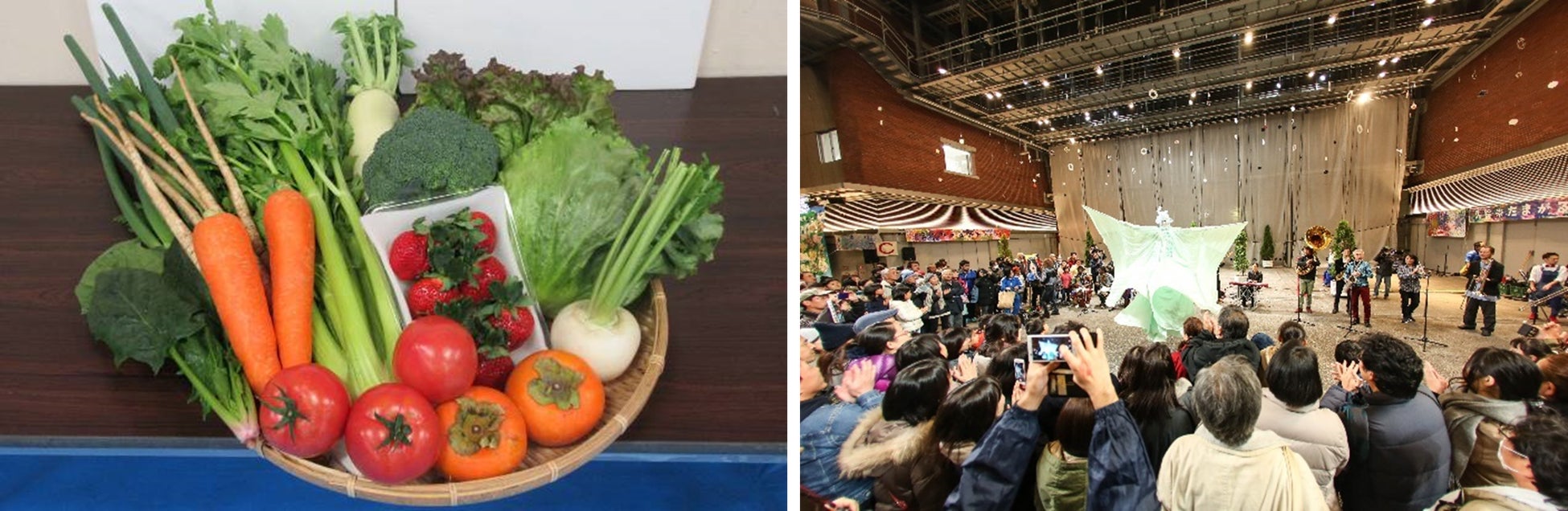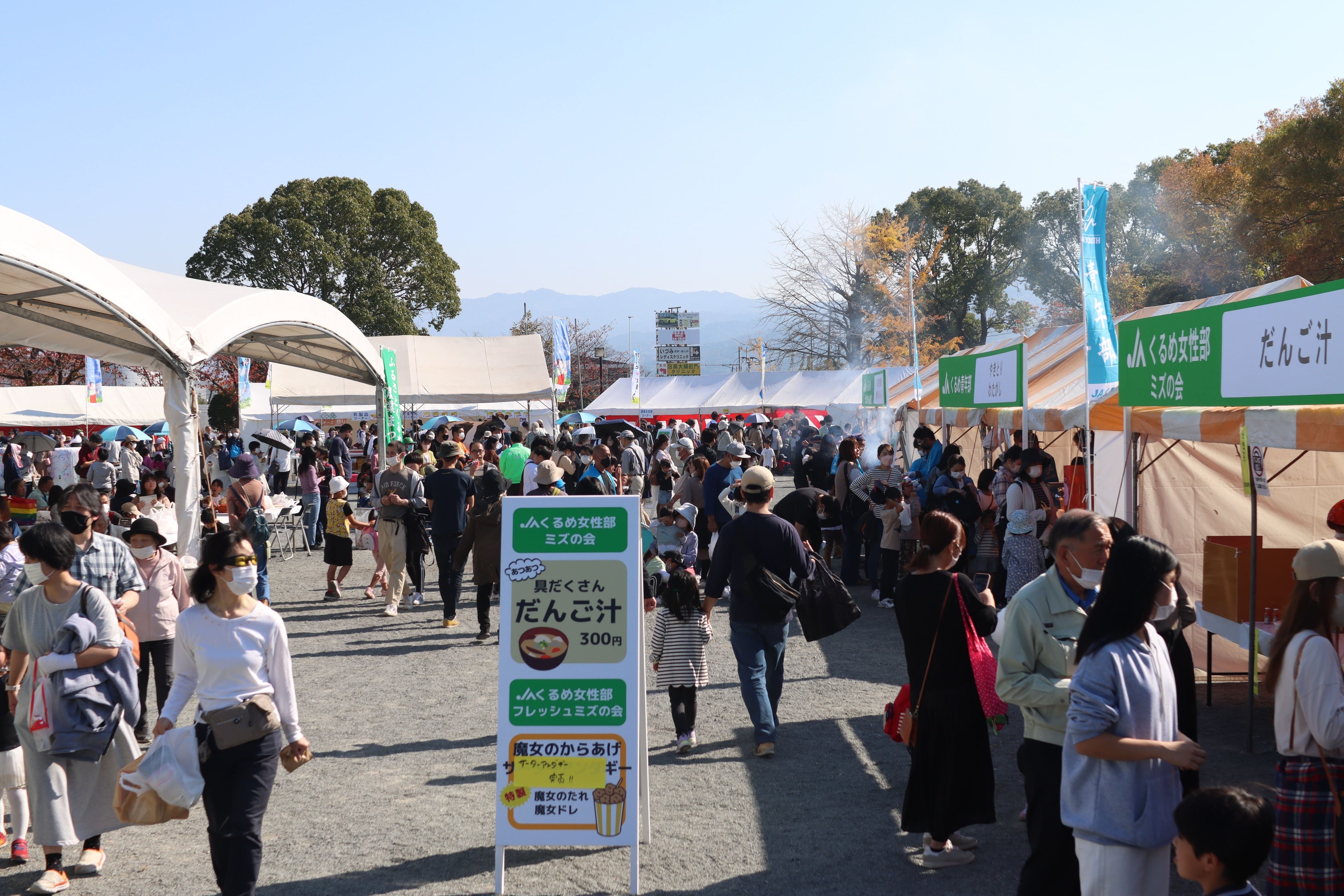 野菜・加工品・特別栽培米などの販売、だんご汁・トマトカレー・久留米産農産物を使用したまつり限定メニュー(焼肉ライスバーガー・野菜の豆乳スープ)などを販売する飲食ブースの設置 など