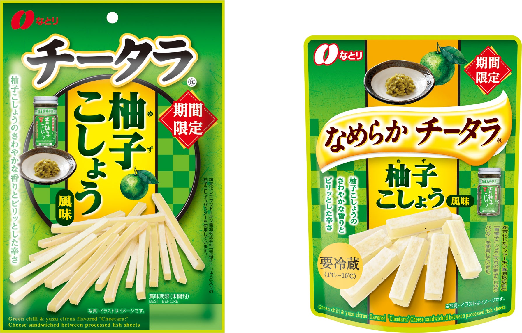 株式会社なとり(本社:東京都北区、会長兼社長:名取三郎)は、「 チータラⓇ 柚子こしょう風味」、「<チルド>なめらか チータラⓇ 柚子こしょう風味」を9月9日(月)より期間限定で新たに発売いたします。