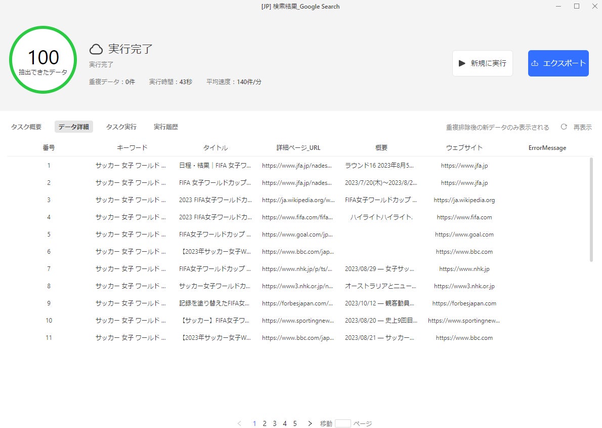 以上の手順に従うことで、OctoparseのGoogleウェブデータ収集テンプレートを使用して2023年女子サッカーワールドカップに関連する情報を簡単に収集できます。このプロセスは自動化されており、データ収集の効率と正確性が大幅に向上します。