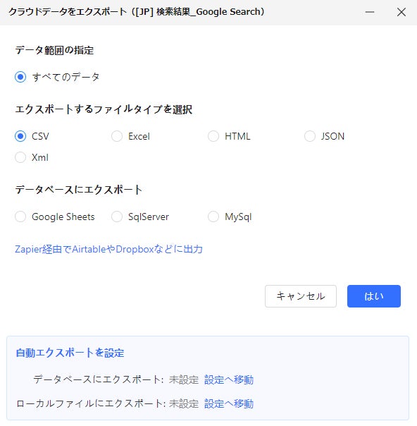 データの保存とエクスポート: タスクが完了したら、設定を保存し、データをExcel、CSVなどの必要な形式でエクスポートするオプションを選択します。