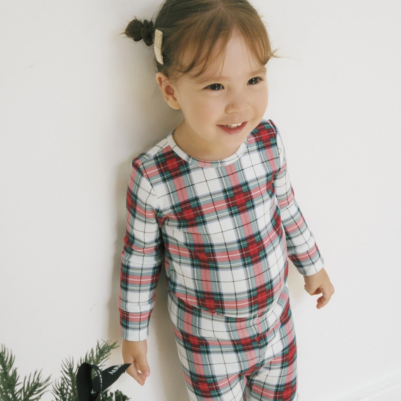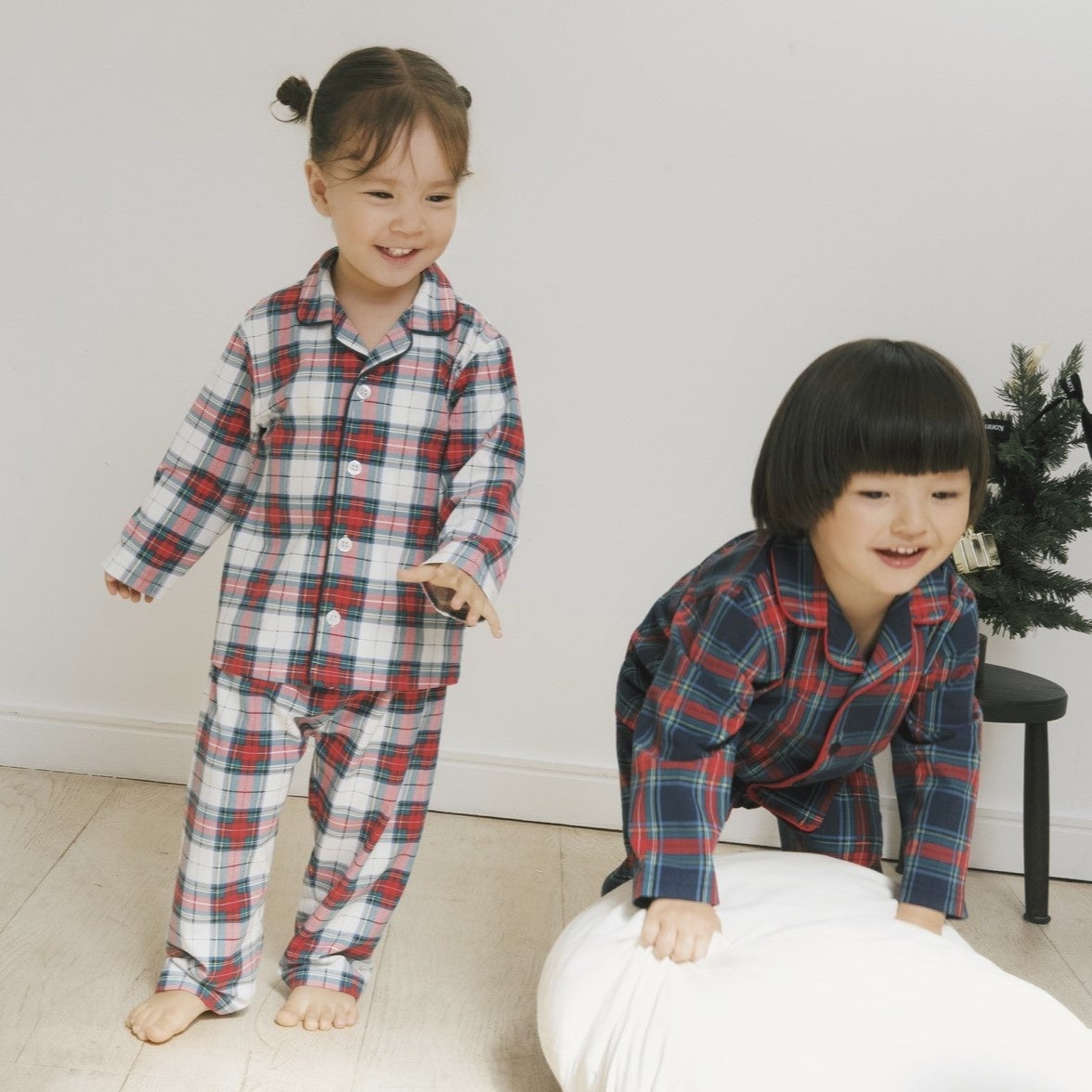 やわらかさと、伸びの良さが人気ののモダールウルトラソフトパジャマセットに、タータンチェック柄が新登場。子どもが気に入って、これしか着たがらない、という声も寄せられるパジャマで、ホリデーシーズンも心地よく過ごしてくださいね。首回りにスナップボタンがないため、着替えやすさも抜群です。