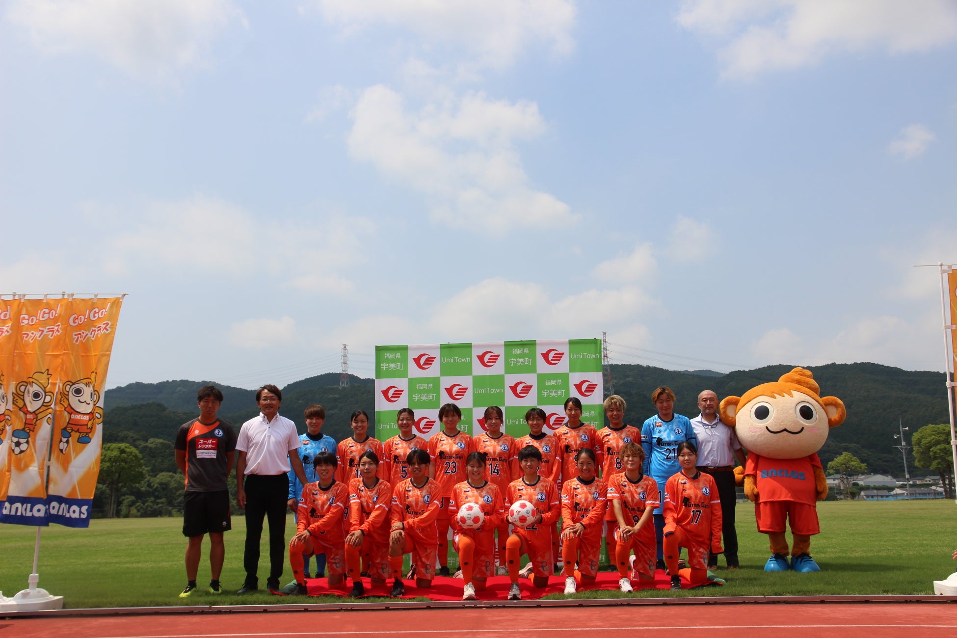 2025年6月30日、梅雨明けして、澄み切った快晴の下、宇美町総合スポーツ公園において、宇美町と福岡J・アンクラスとの連携に関する協定締結式を行いました。