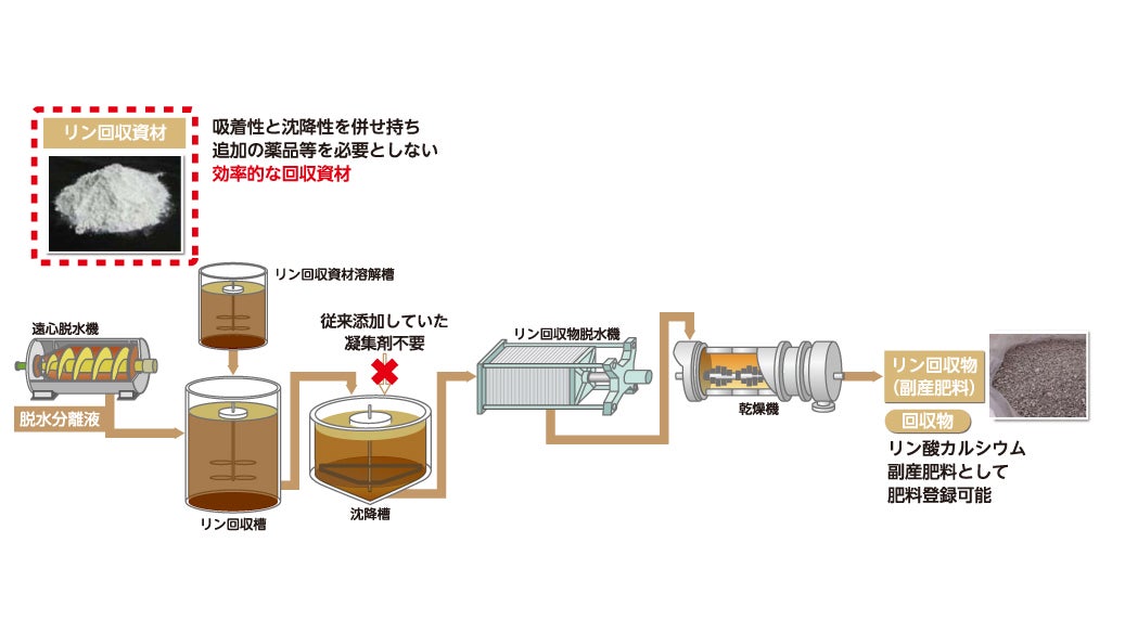 本施設は、2023年2月に国土交通省の下水道革新的技術実証事業(B-DASHプロジェクト)*1に採択された「新たなリン回収システムによる下水道の資源化に関する実証研究」を行う施設で、リン回収資材を用いて、下水汚泥脱水分離液*2から効率よくリンを回収し、安定的なリン資源とすることで下水道が持つ資源を有効利用するものです。