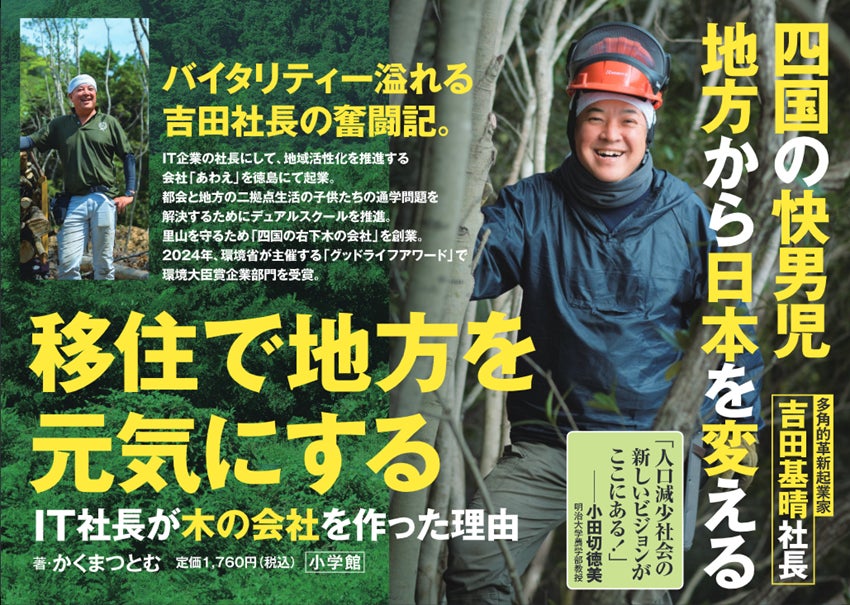 2025年4月1日、株式会社四国の右下木の会社代表取締役吉田が、人気アウトドア雑誌「BE-PAL」で長期連載していた人気コラムをまとめた書籍「移住で地方を元気にする IT社長が木の会社を作った理由」が小学館より発刊されます。本書では、吉田が徳島で挑戦を続ける「移住×ビジネス」の取り組みを詳しく紹介し、地域資源を活かした新たな地方創生の可能性を探ります。