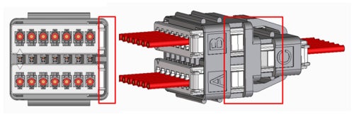 - 嵌合時にロック箇所の凹凸が出ない平面構造で、他配線への接触や引っかかりを回避します。ー図3