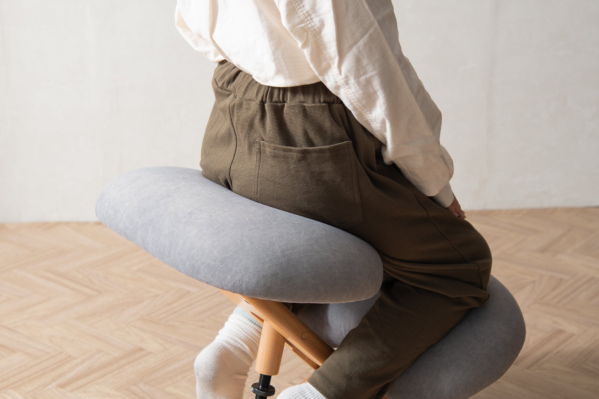 その結果、骨盤や骨格への圧迫が少なく、内臓への負担も軽減するお子様の体に優しいチェアです。