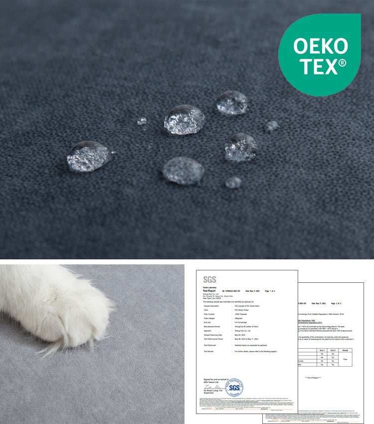 ひっかき傷への強さや毛玉の出来にくさ、撥水性等を兼ねた生地で従来品より