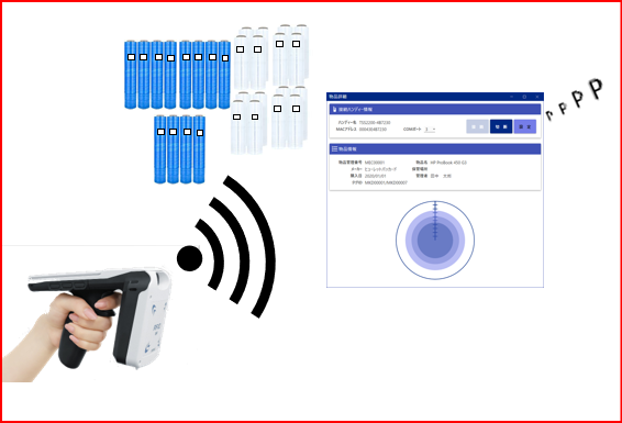 ●RFIDタグを一括読み取りすることで面倒な棚卸業務の負担を劇的に軽減します