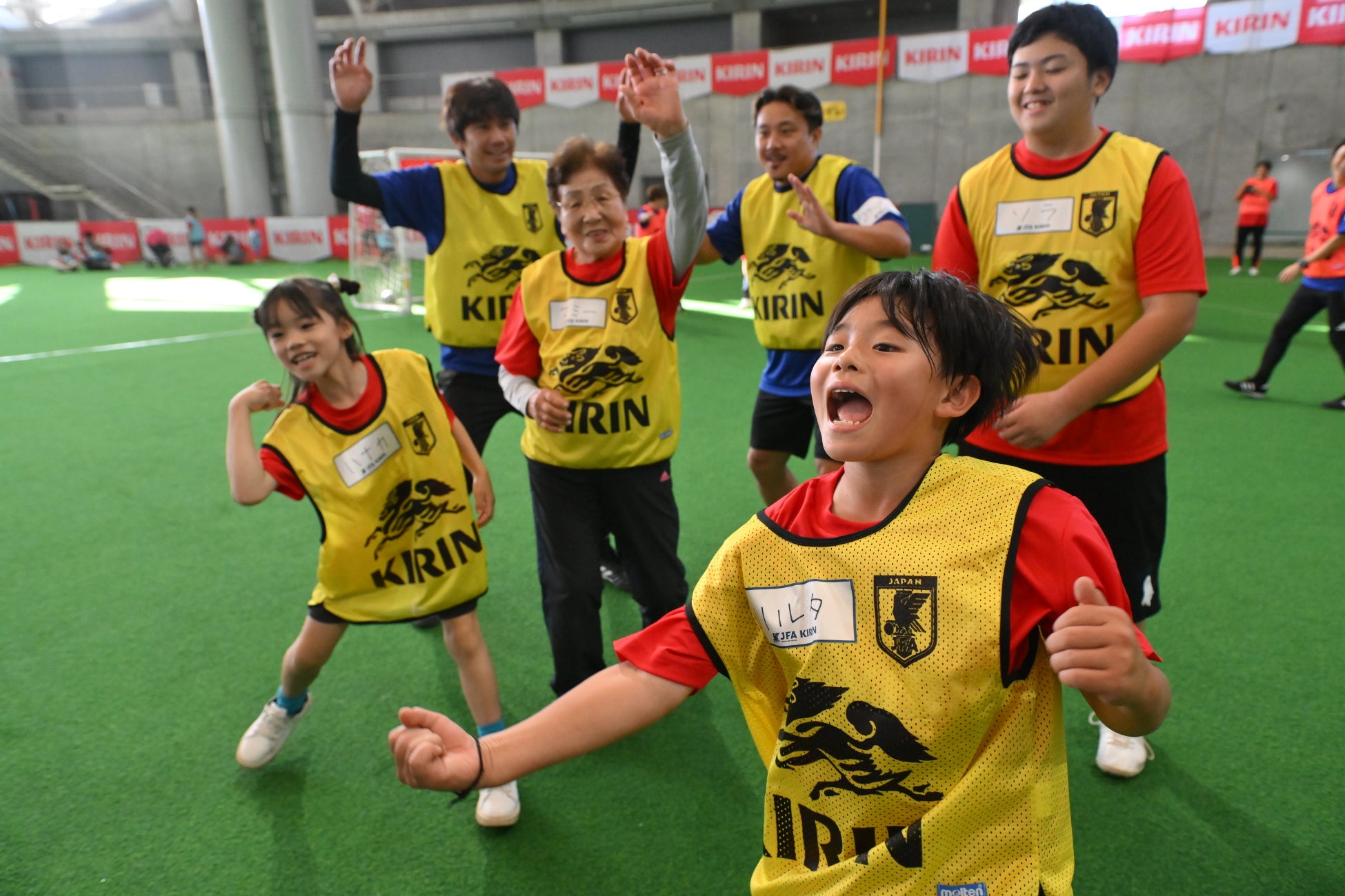 キリンホールディングス株式会社(社長 COO 南方健志、以下キリン)と、公益財団法人日本サッカー協会(会長 宮本恒靖、以下JFA)は共同で、「年齢、性別、サッカー経験や障がいの有無にかかわらず、大人も子どもも一緒に楽しめるウォーキングフットボールイベントとして、「キリンファミリーチャレンジカップ」を10月4日(土)につどーむ(北海道)にて開催しました。