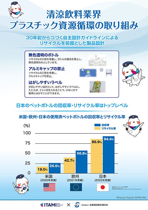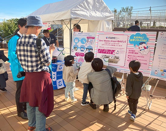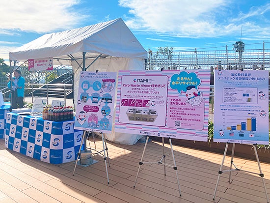 一般社団法人 全国清涼飲料連合会(会長:本庄大介、以下「全清飲」)は、関西エアポート株式会社(本社:大阪府泉佐野市泉州空港北1番地、代表取締役社長:山谷佳之)と初めて、ペットボトルの水平リサイクル啓発に取り組みました。11月9日(土)に「大阪国際空港(伊丹空港)空の日エアポートフェスティバル」にて、関西エアポート社と連携したブースを出展、ペットボトルの水平リサイクル「ボトルtoボトル」について来場者にお伝えしました。