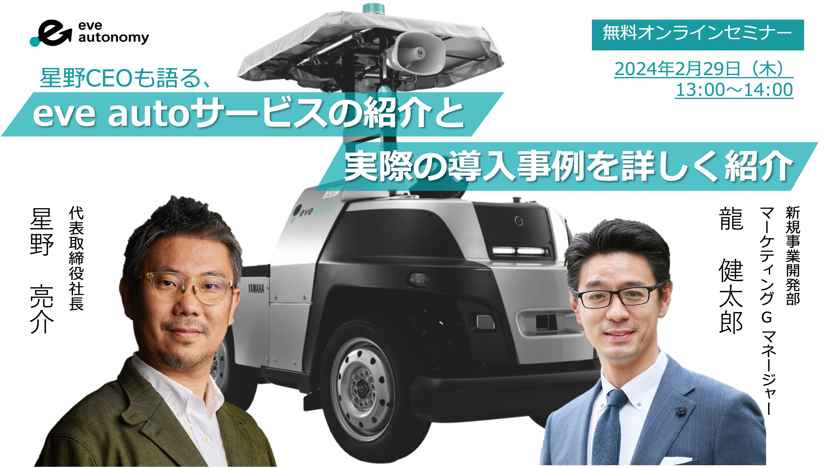 【イブ・オートノミー】2月29日(木)無料オンラインセミナー / 星野CEOも語る、eve autoのサービスと導入事例を詳しく紹介する第一回ウェビナーを開催