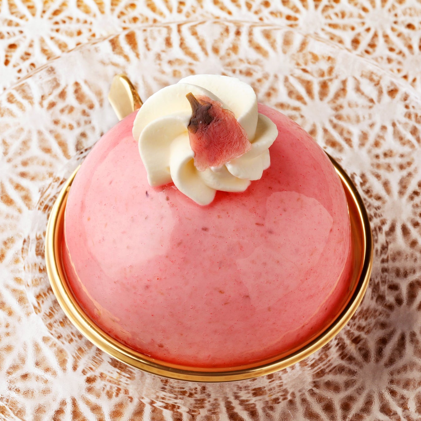 ムースでもメレンゲでもない、ふわふわ食感のスイーツ。春限定のお味はもちろん桜。薄ピンクの桜のダンジュクリームの中に、真っ赤な苺のコンポートを忍ばせました。