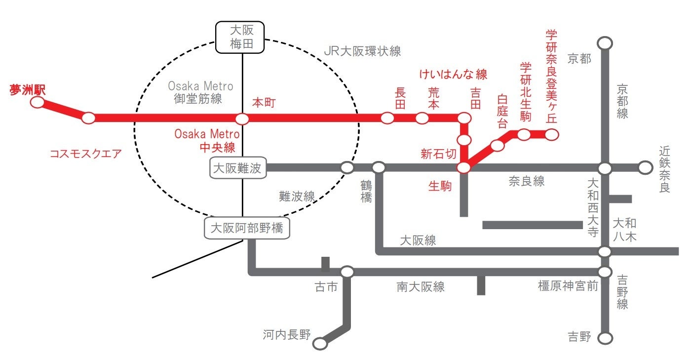 万博会場への交通手段として55%が鉄道を利用する見込みと言われています。また、現在会場最寄り駅となる「夢洲駅」へ入るOsaka Metro中央線への乗り入れ比率で、約46%が近鉄車両となっております。けいはんな線・まるごとジャック特別企画は、会場につながる車両をまるごとジャックしていただけます。