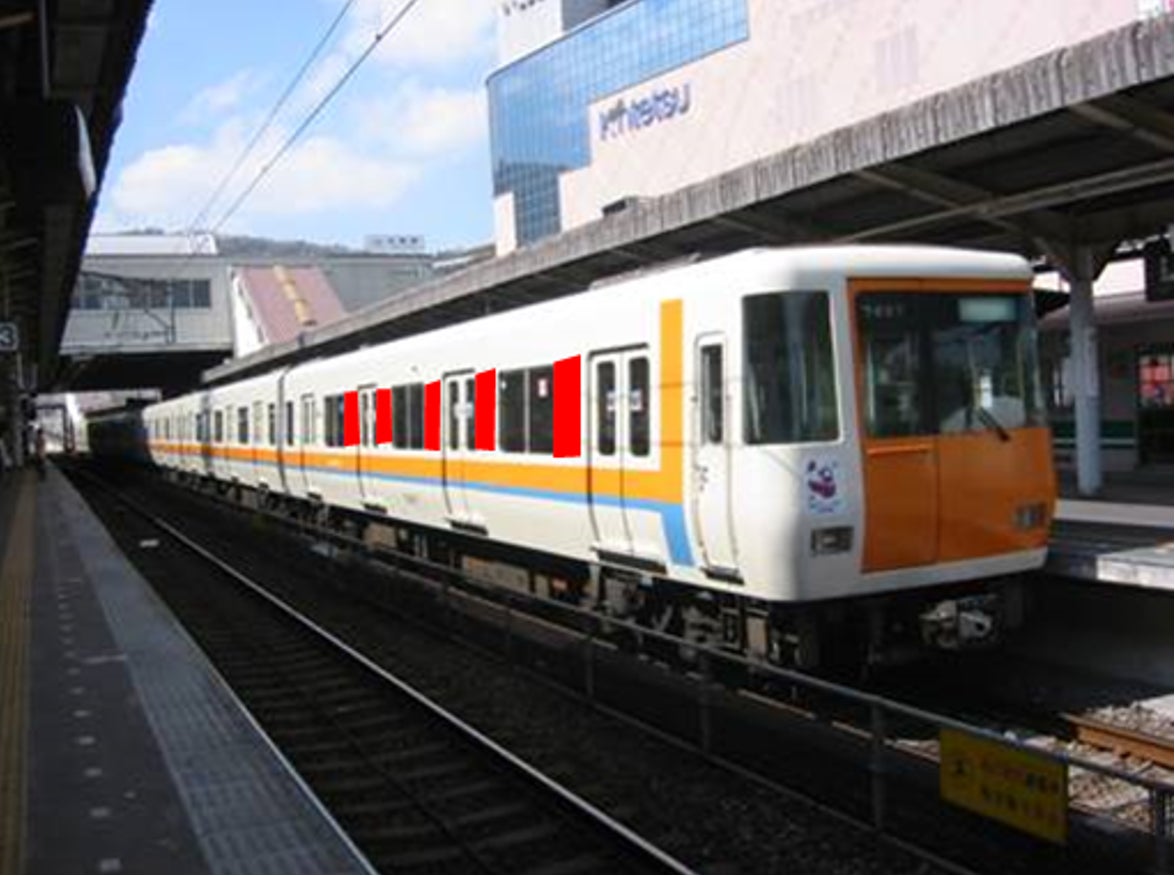 ①車体ボディーシート ②A Dトレイン ③車内フロアステッカー ④扉下ステッカー ⑤[オプション]つり革広告 |