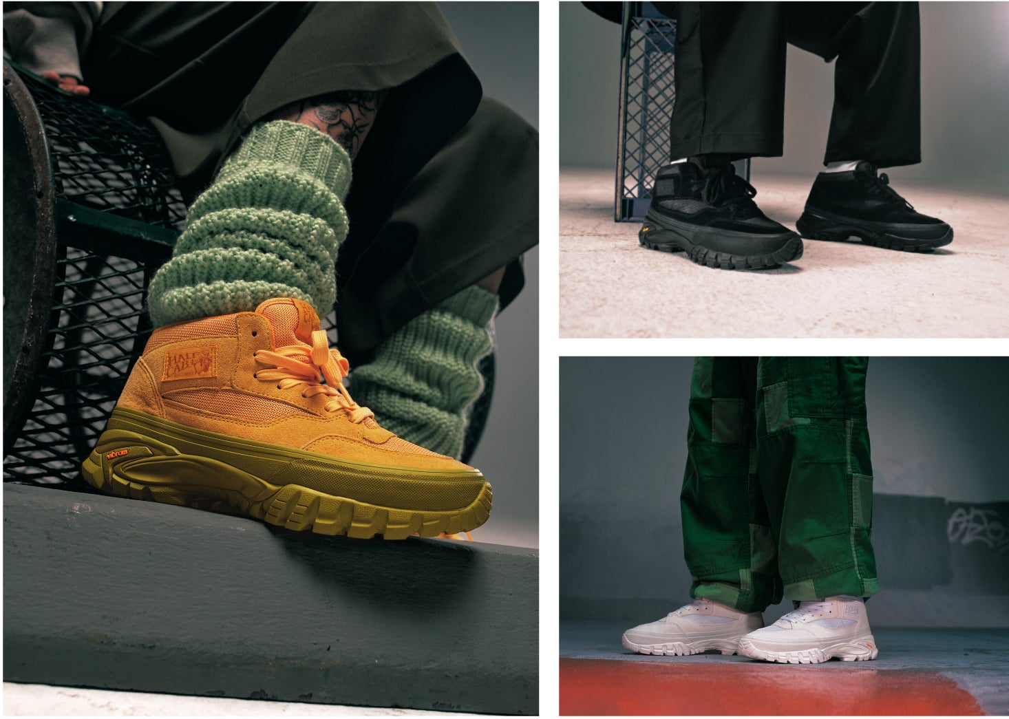 「OTW by Vans」の第1弾モデルでは、VANS初のVibramソールを採用した「HALF CAB REISSUE 33 VIBRAM」が3色で登場。最もアイコニックなスケートボードシューズを、専用のVibramソールとバルカナイズボトムで再定義いたしました。