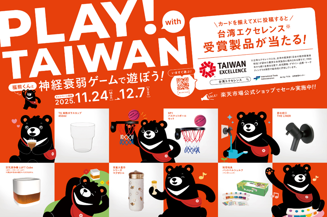台湾エクセレンスは、経済部国際貿易署(TITA)と台湾貿易センター(TAITRA)が実施する対外プロモーションにおいて重要な役割を担う賞で、1993年から続く台湾産業界におけるオスカー賞です。各分野の専門家約140名が、「研究開発」「デザイン」「品質」「マーケティング」の4項目で厳正に審査し、革新的な価値が認められた製品に賞を授与しています。2024年11月からは、「台湾エクセレンスセレクトショップ」もオープンし、受賞した製品に触れていただけるようになりました。今後もより多くの方に、台湾発の革新的な価値や優良な商品を日本の皆様に知ってもらうべく「PLAY! with TAIWAN」をテーマに、プロモーションを行います。