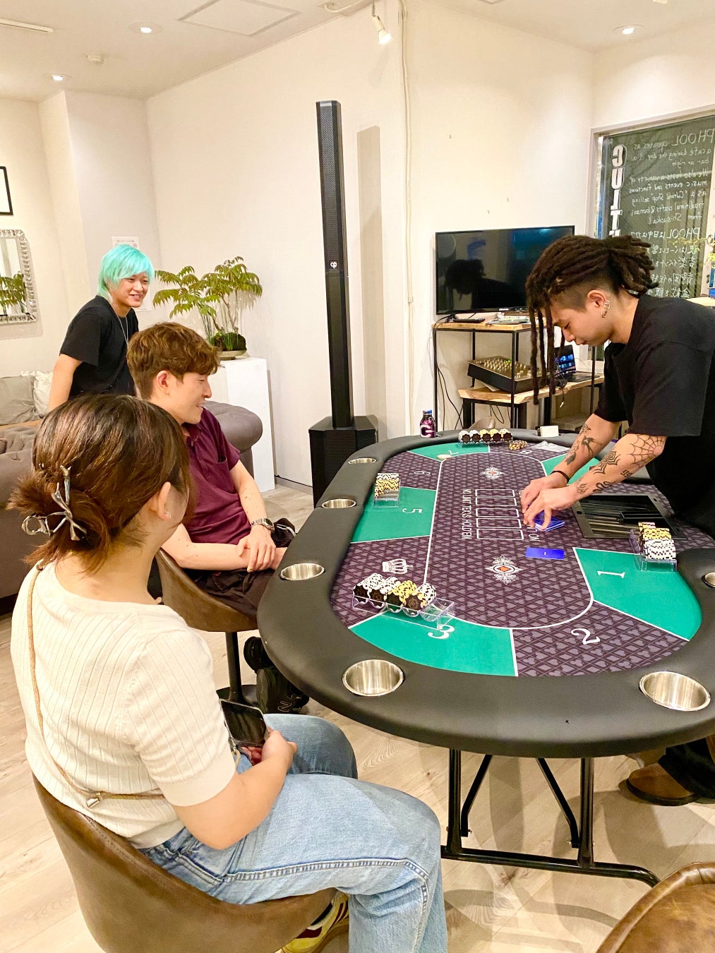 「PHOOLの立ち上げを行う際に、飲食だけではなく、人と人を繋ぐアクティヴィティが何か取り入れられたらと思い、ポーカースペースを設けることにしました。許可申請に予定していたよりも時間がかかりましたが、やっとオープンを迎えることができました。有難いことに「ポーカーができると聞いて」、と興味を持ってお店を尋ねてきてくださるお客様も多く、無事にオープンまで辿り着けたことを嬉しく思います。都心からのアクセスが良く旅人が行き交う熱海の街で、より思い出に残る体験が提供できる、また地元の方にも気軽に立ち寄りゲームを通じて出会う人々との交流を楽しんでもらえる場所になればと思います。」