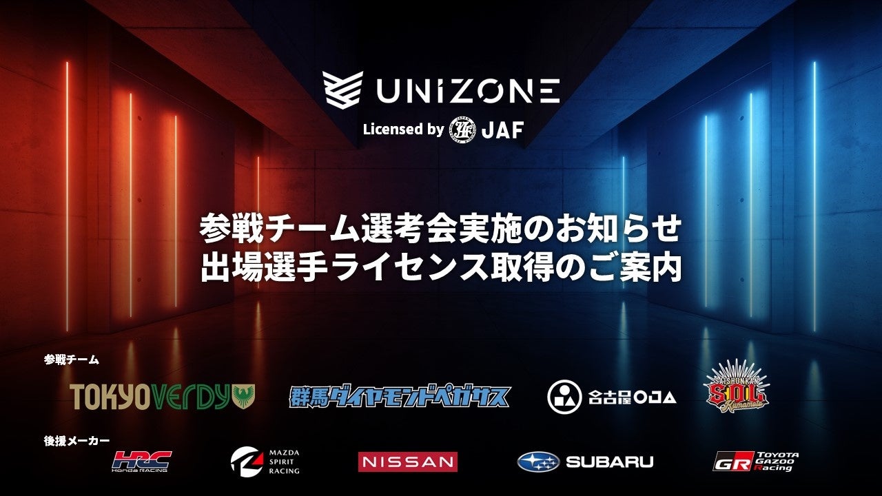 【2025年開幕eモータースポーツリーグ UNIZONE】参戦4チームと後援メーカーが決定!追加参戦チームの選考会を実施、選手として出場するために必要なライセンスの取得案内を開始!
