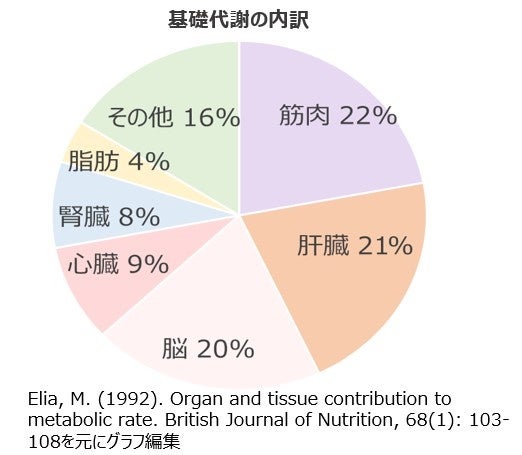 また、筋力トレーニングなどで筋肉量を増やすことは基礎代謝を上げることに有効です。筋肉が消費するカロリーは基礎代謝の中でも約22%と比率が高く、筋肉が消費するカロリーを増やすとダイエットの効率が良くなるのは事実です。ただ、運動が苦手な方や、これまで運動を行っていない方は強度の高い運動は関節障害などを招く恐れもあるので無理をしないようにしましょう。