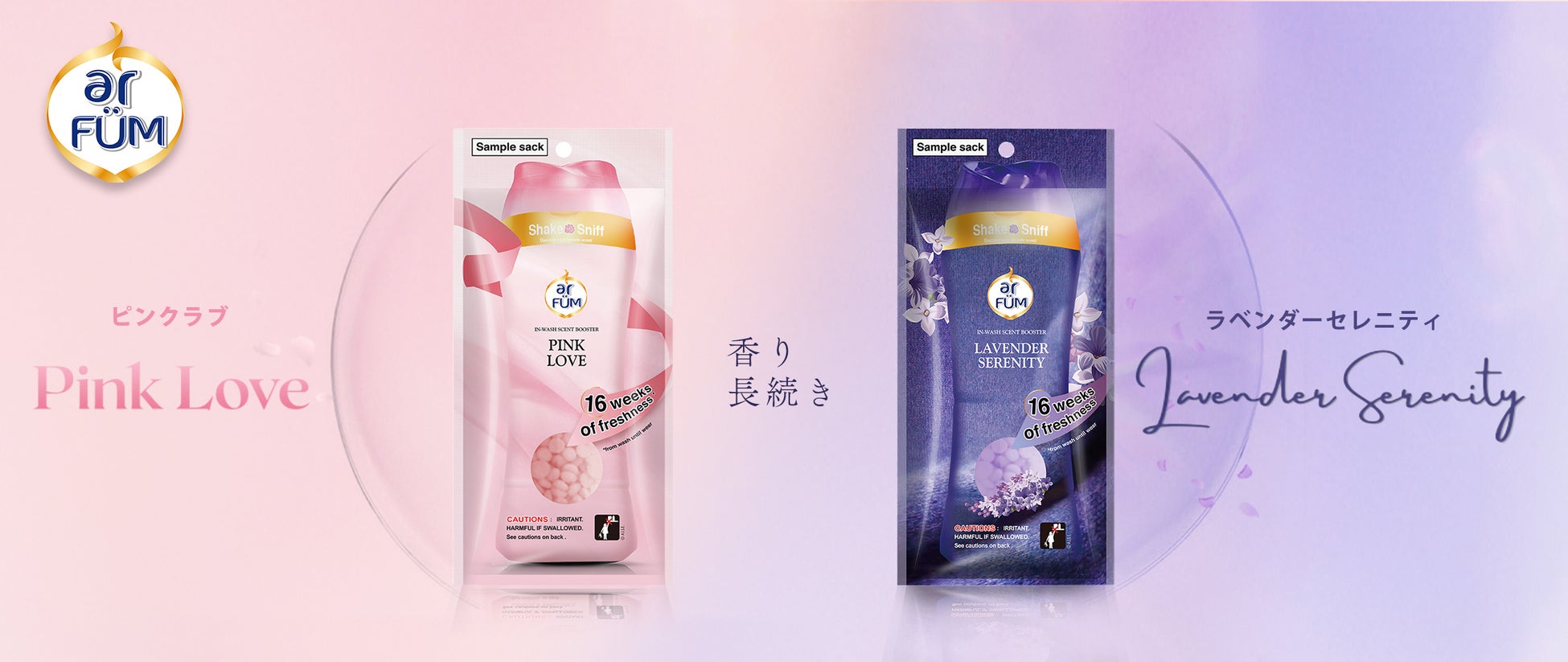 「強浄力*¹」「抜群の抗菌・消臭力*²」「柔軟効果」と、一流の調香師による 「厳選されたパフューム (=香水) のような香り」を1粒に凝縮し、“優雅に続く幸せアロマ 洗剤”を実現した唯一*¹のボール型洗濯洗剤「アフューム」。現在、展開中の2種類の香り「アモーレ」と「ローズ」に加え今回新たな商品を発売し、香りの選択の幅を広げます。