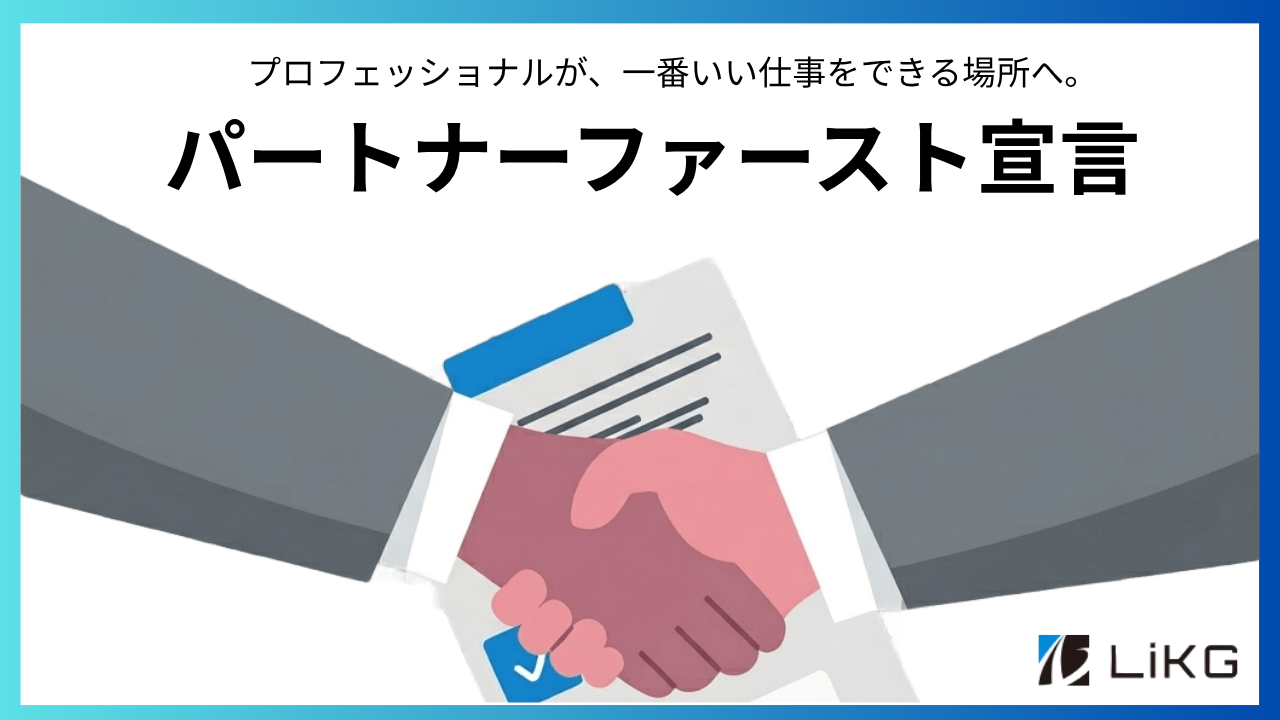 株式会社LiKG(本社:東京都渋谷区、代表取締役:近藤光生)は、フリーランスとの関係強化を目的とした新たな取り組みとして、「パートナーファースト宣言」ページを公開しました。本ページでは、フリーランスを単なる外部リソースではなく、価値創出を共に担うパートナーと位置づける思想と、その具体的な取り組みについて明文化しています。