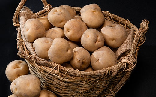 そんな今金町の「今金男しゃく」は、全国流通量がわずか0.3%の幻のじゃがいも。周囲の山々に囲まれた、寒暖差の激しい自然環境と水はけの良い肥沃な土壌で育ったじゃがいもは、でんぷん含有率が13.5%以上と非常に高く、ほくほくとした食感が特徴です。厳しい選定基準をクリアした「今金男しゃく」は、市場でも品質、味ともに最高級と評価されています。