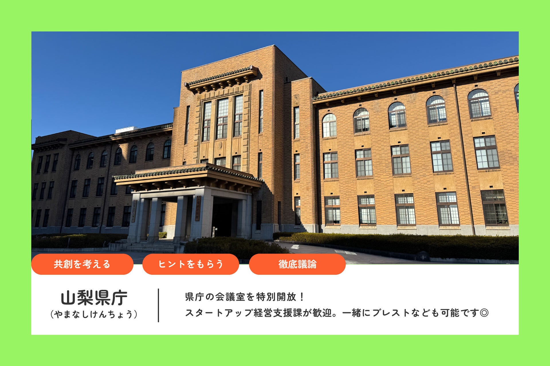・山梨県庁会議室を開放!事業ピッチをして来年度に向けた施策を練りたい