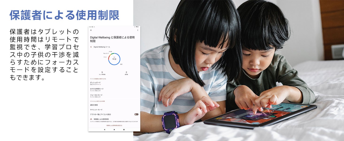 オンライン授業対応、画面分割、目の保護モード、保護者による使用制限などをサポート、子供のクリスマス/新年プレゼントとしておすすめ