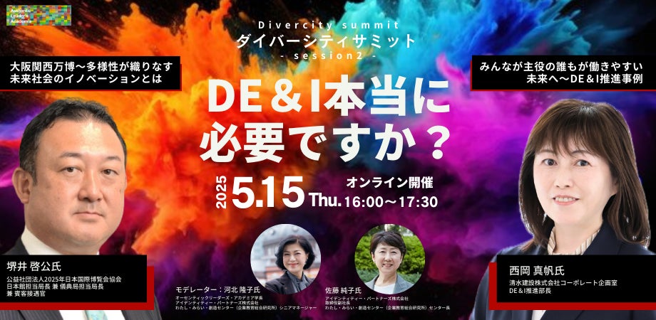 ダイバーシティサミット-session2- DE&I、本当に必要ですか?が開催~大阪・関西万博 博覧会協会局長と清水建設 DE&I推進部長が登壇~【5/ 15(木)】
