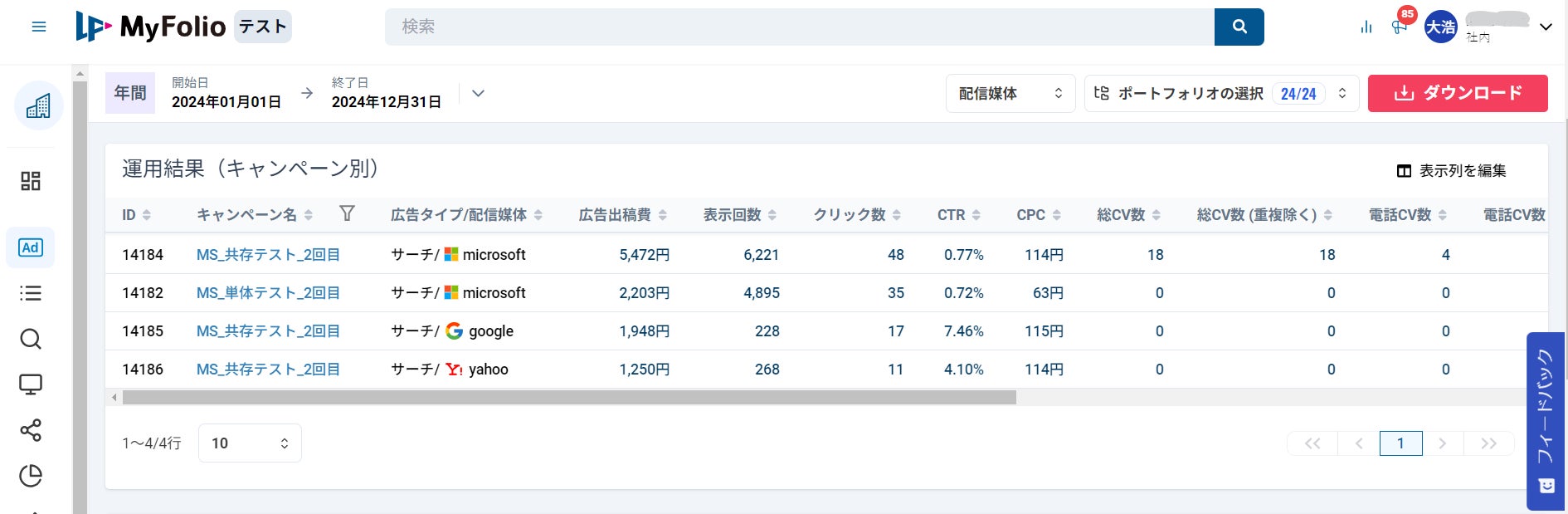 本機能強化により、Google広告、Yahoo!広告、Meta広告、Microsoft広告それぞれの施策の効果をいつでも、簡単に、比較検証をすることが可能となり、パフォーマンス改善や広告予算の最適な配分に役立てることができます。