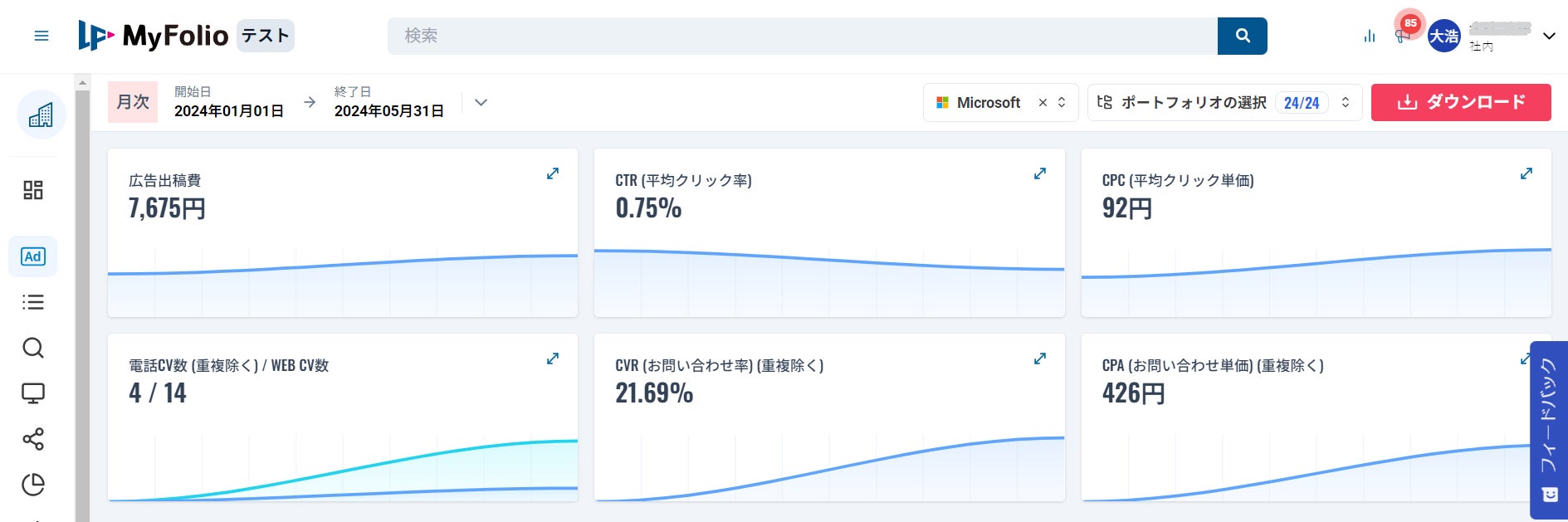あらゆる「ヒト」に向けたマーケティングサービスを提供するリードプラス株式会社(英語表記: Leadplus Co., Ltd. 本社:東京都世田谷区、代表取締役社長:堀 裕、以下「リードプラス」)は、自社開発の広告運用ダッシュボード「MyFolio(マイフォリオ)」を強化し、Microsoft広告の効果もリアルタイムで確認・分析ができる機能の提供を開始しました。同時に、広告経由で発生した電話での問合せを計測する「通話追跡機能(コールトラッキング)」との連携も可能となりました。