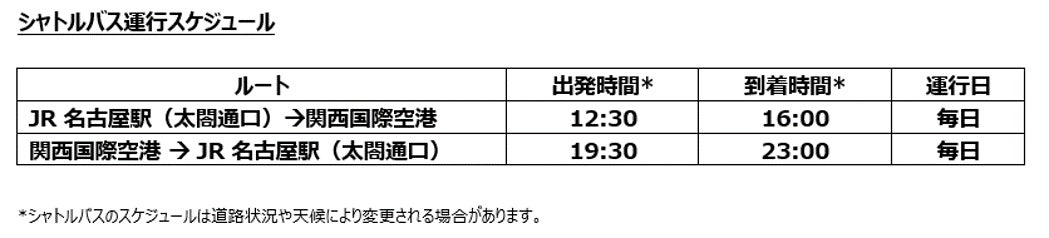 なお、オンライン予約の際に、出発地または目的地に名古屋駅のコード「NGY」を入力いただくと、シャトルバスサービスが自動的に旅程に追加されます。さらに詳しい情報はhttps://www.qatarairways.com/ja-jp/offers/nagoya-shuttle-service.html よりご覧いただけます。
