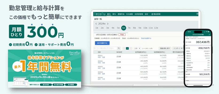 中央システム株式会社(本社:東京都新宿区、代表取締役社長:本間 匡、以下中央システム)は、クラウド勤怠管理システム「RecoRu(レコル)」が2025年2月20日に「給与計算オプション」をリリースしたことをお知らせいたします。