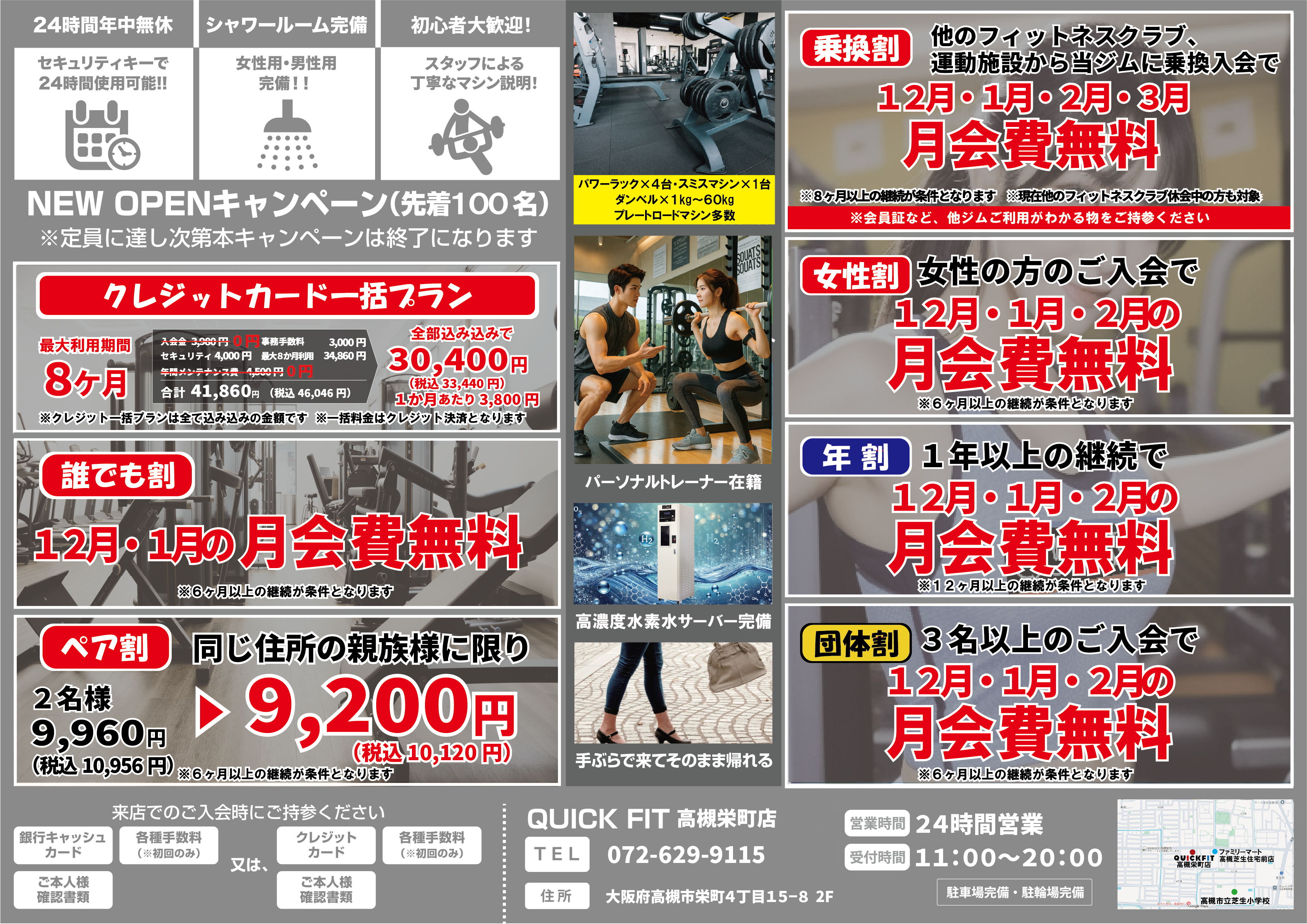 初心者からシニアまで安心の有人対応24時間ジム!「QUICKFIT高槻栄町店」12/20(土)オープン!入会金・年会費ダブル0円キャンペーン実施