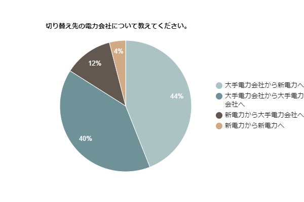電力会社の切り替えに関する調査では、「大手電力会社から新電力」に切り替えた方が44%で最も多い結果となりました。