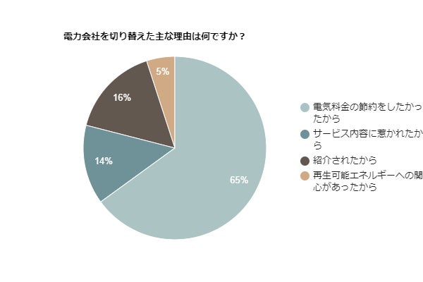 電力会社を切り替えた理由として、65%の方が「電気料金の節約をしたかったから」と回答しました。